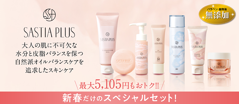 <セット内容> サスティアプラス モイストミネラルソープ/60g(約1~1.5ヵ月分)※3サスティア プラス クレンジングジェル/100g(約1ヵ月分)※3