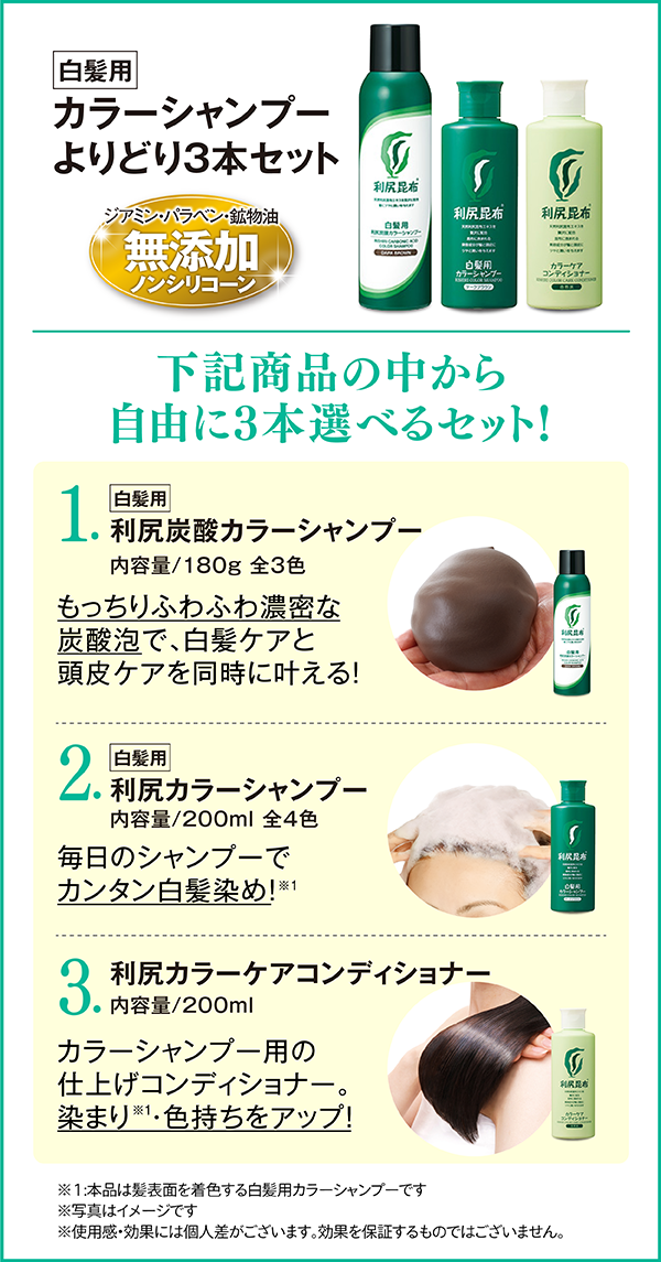 [白髪用]利尻カラーシャンプーよりどり3本セット