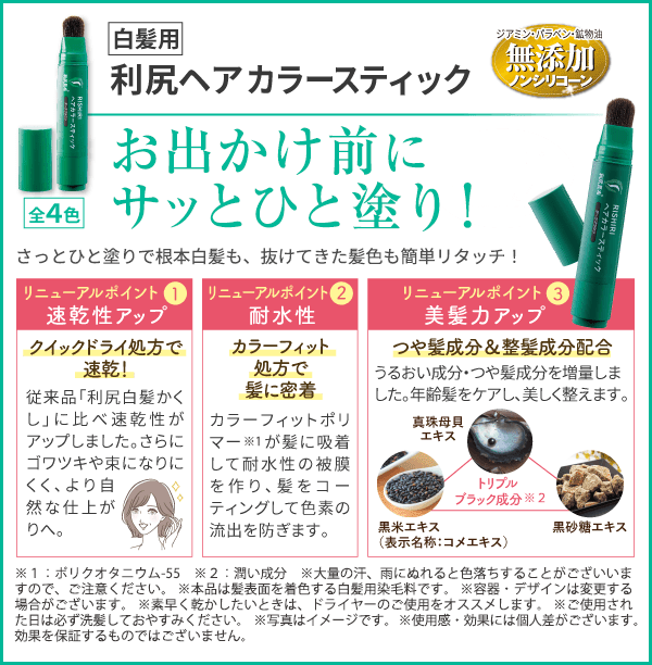 <セット内容> [白髪用]利尻ヘアカラースティック /20g 全4色x4商品詳細はこちら
