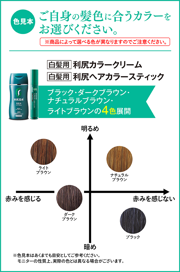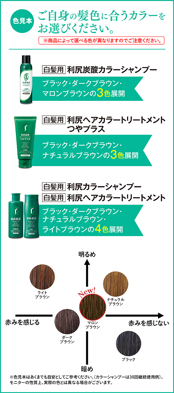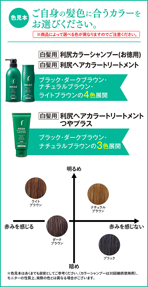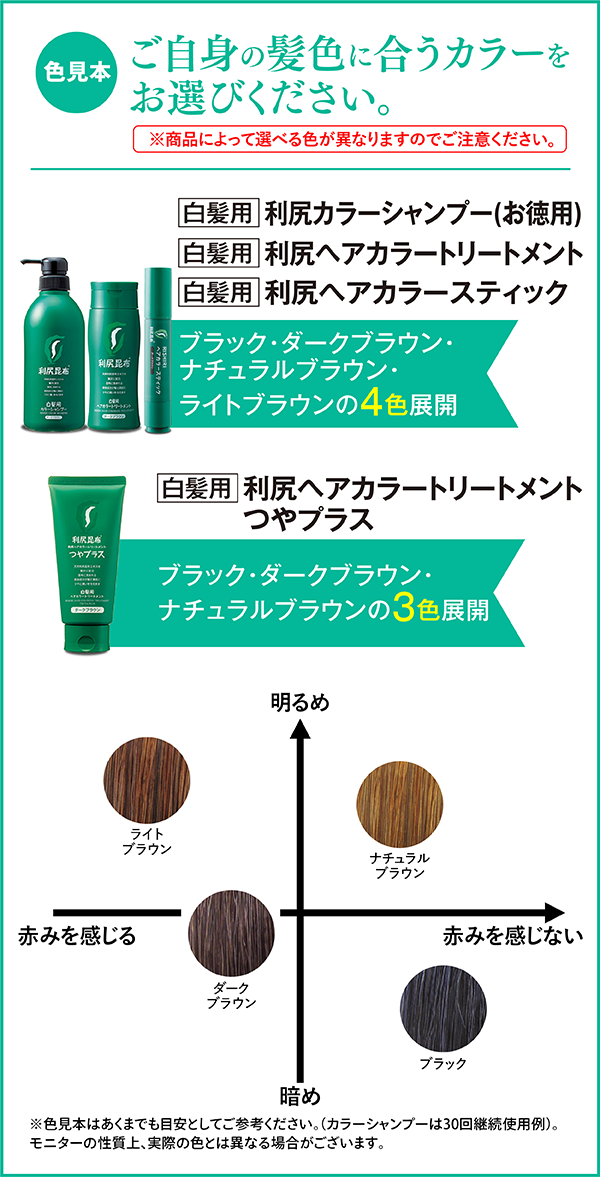 - ※利尻ヘアカラーシリーズ商品をご使用の際は必ず48時間のパッチテストを行ってください。