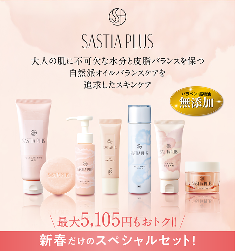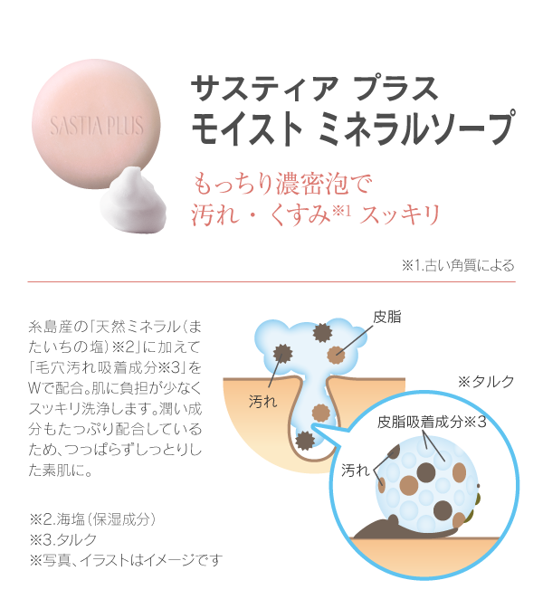 <セット内容> サスティアプラス モイストミネラルソープ/60g(約1~1.5ヵ月分)※3サスティア プラス クレンジングジェル/100g(約1ヵ月分)※3