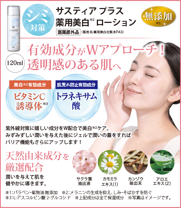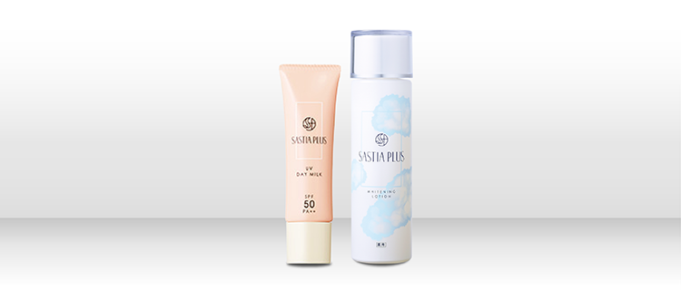 <セット内容> サスティア プラス UVデイミルク/30g(約1~1.5ヵ月分)※3サスティア プラス 薬用美白ローション[医薬部外品](販売名:薬用美白化粧水PA3)/120ml(約1ヵ月分)※3