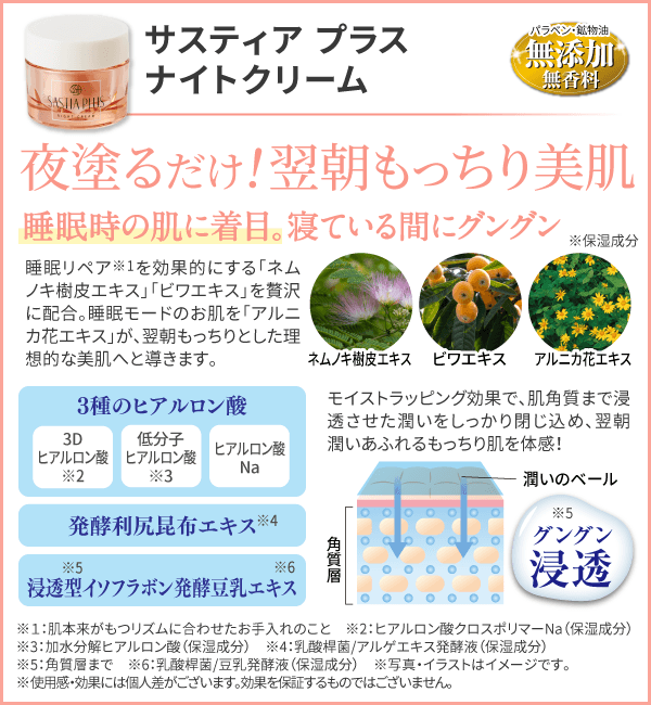 サスティア プラス ナイトクリーム/30g(約1ヵ月分)※3