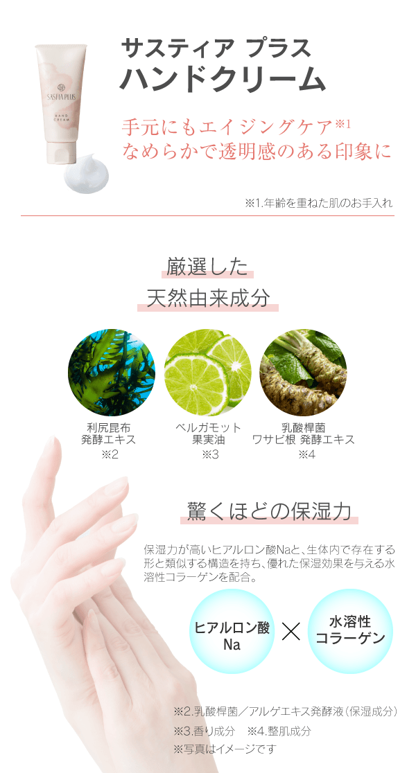<セット内容> サスティア プラス ハンドクリーム/50g※3サスティア プラス ナイトクリーム/30g(約1ヵ月分)※3